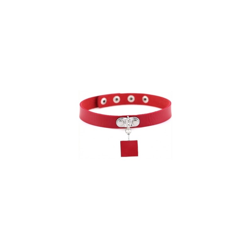 Avec un pendentif en métal recouvert de simili. Forme carrée (2.3 x 2.3cm).