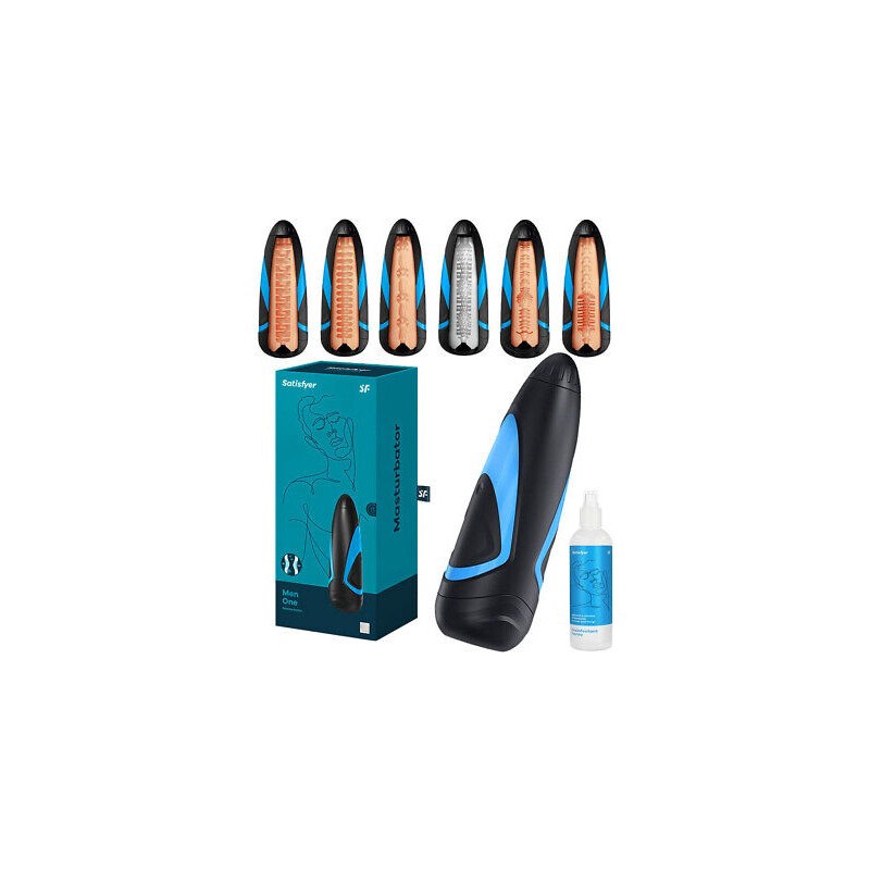 Une masturbation masculine d'un nouveau genre avec cette gaine Satisfyer amovible Pressure Spiral-G en cyberskin.