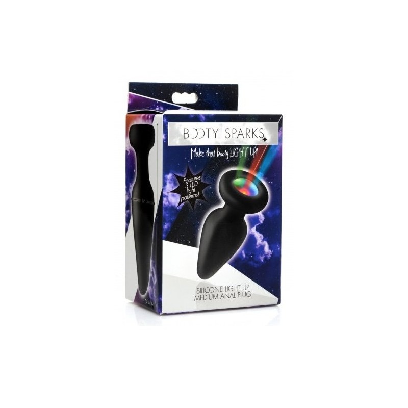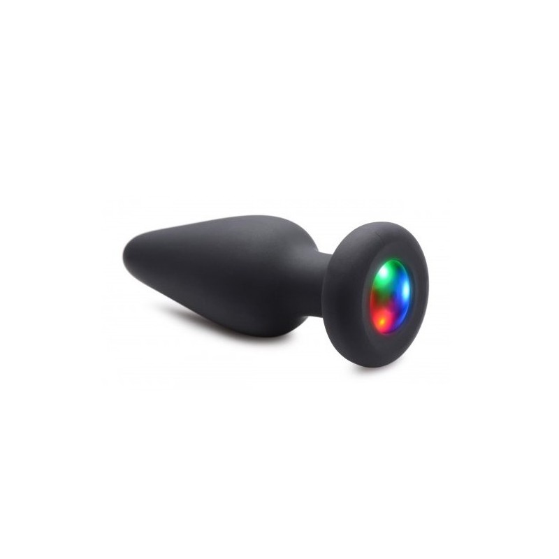 Ce plug bijou lumineux est un sextoy original de 9.5cm de longueur insérable et de 4cm de largeur.