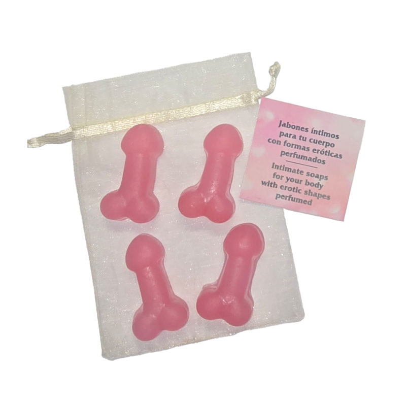 Il y a 4 mini savons en forme de pénis rose à l'odeur océanique, dans un sachet organza, ces savons peuvent être utilisés comme gels intimes pour vos parties ou pour les mains, ou comme désodorisant (à transporter dans le rétroviseur de la voiture) ou à mettre à l'intérieur de vos vêtements pour qu'ils sentent bon ou comme décoration dans la salle de bain ou à offrir en cadeau. Ce sont des savons à la glycérine végétale et à la glycérine cristalline, des savons de créateurs fabriqués à la main, de manière artisanale exclusivement avec des huiles végétales (coco, olive, palme...) saponifiées à froid, selon notre propre procédé artisanal. Tous les savons sont enrichis des principes actifs qui leur donnent leur nom (églantier, alo vera, argan,...) et parfumés avec un pourcentage élevé de parfums, d'huiles essentielles de la plus haute qualité. Conscients de l'importance d'utiliser des produits naturels, bénéfiques pour la santé et le soin de notre peau, nous fabriquons nos produits avec la sécurité d'offrir le meilleur savon au monde, fabriqué avec des ingrédients de première qualité, doux, naturels et végétaux. Certificat n° 17050007 pour le respect des bonnes pratiques de fabrication (BPF) des produits cosmétiques selon la norme UNE-EN ISO 22716
