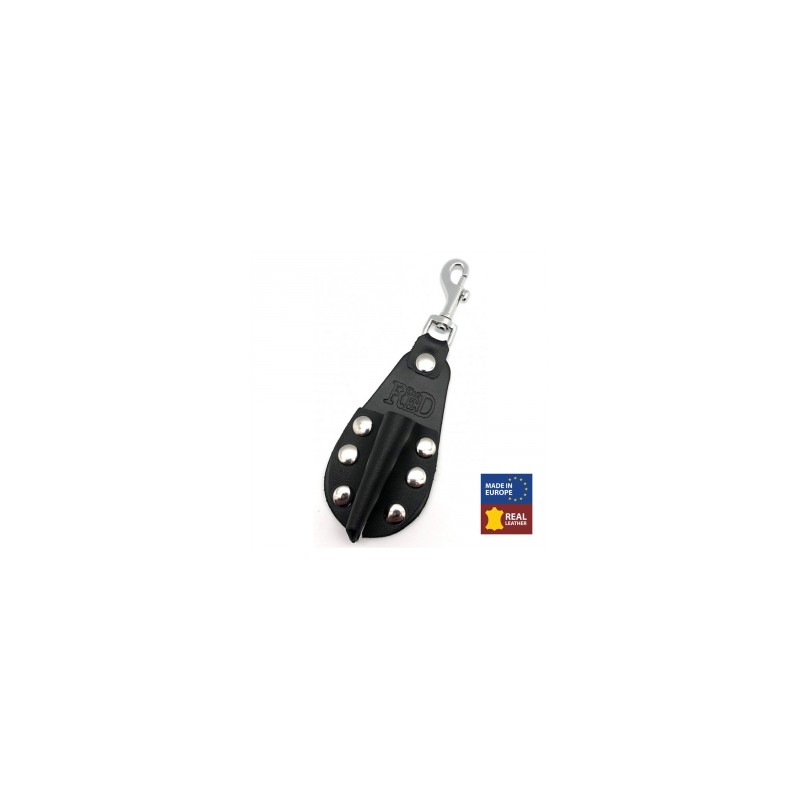 Il est réalisé en cuir véritable avec un mousqueton en métal.