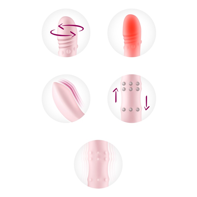 3 rangées de perles pivotant sur elles-mêmes glissent de bas en haut tout le long de votre vagin pour une sensation de pénétration. Vous aurez le choix de 6 mouvements différents pour varier les plaisirs selon vos envies du moment.