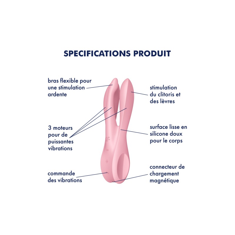 Un plan à trois avec son stimulateur ? voici le nouveau stimulateur clitoridien par Satisfyer : Threesome 1, au design moderne à trois embouts pour une stimulation du clitoris et des lèvres. Doté de 3 moteurs super-puissants dans chaque embouts, il propose plus de 44 modes de vibrations pour une stimulation intense.