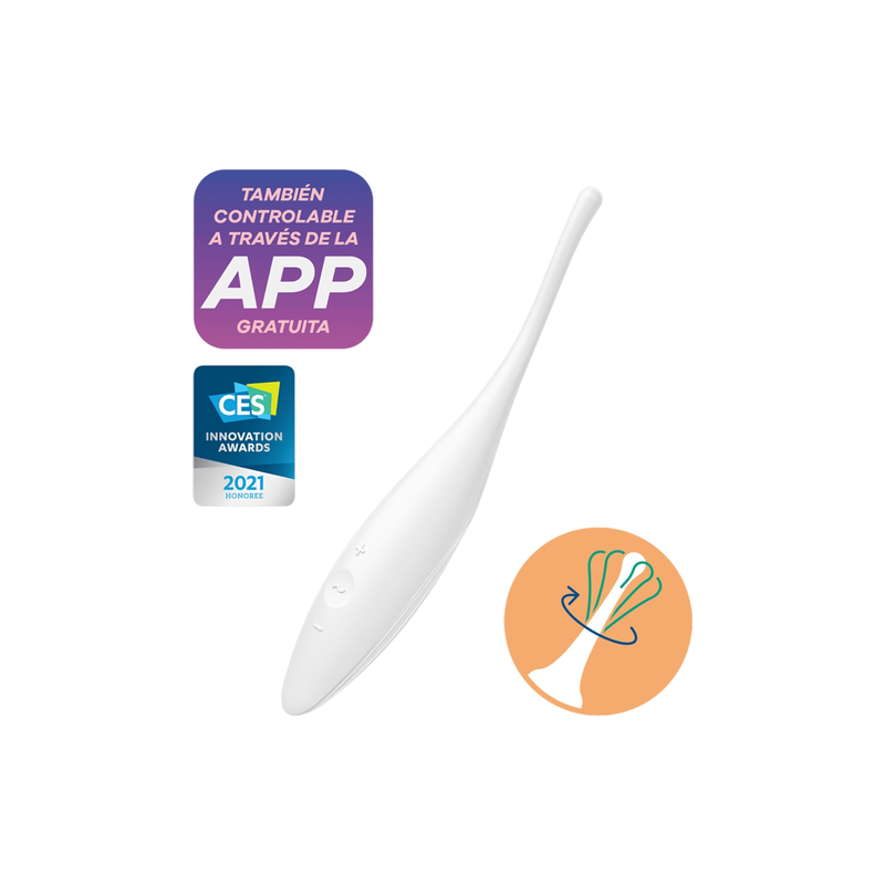 Le Satisfyer Twirling Joy en silicone stimule toutes les zones érogènes, comme le clitoris, les lèvres ou encore les mamelons, grâce à ses vibrations circulantes. Les vibrations peuvent être contrôlées via le panneau de commande ou l'application Satisfyer Connect.